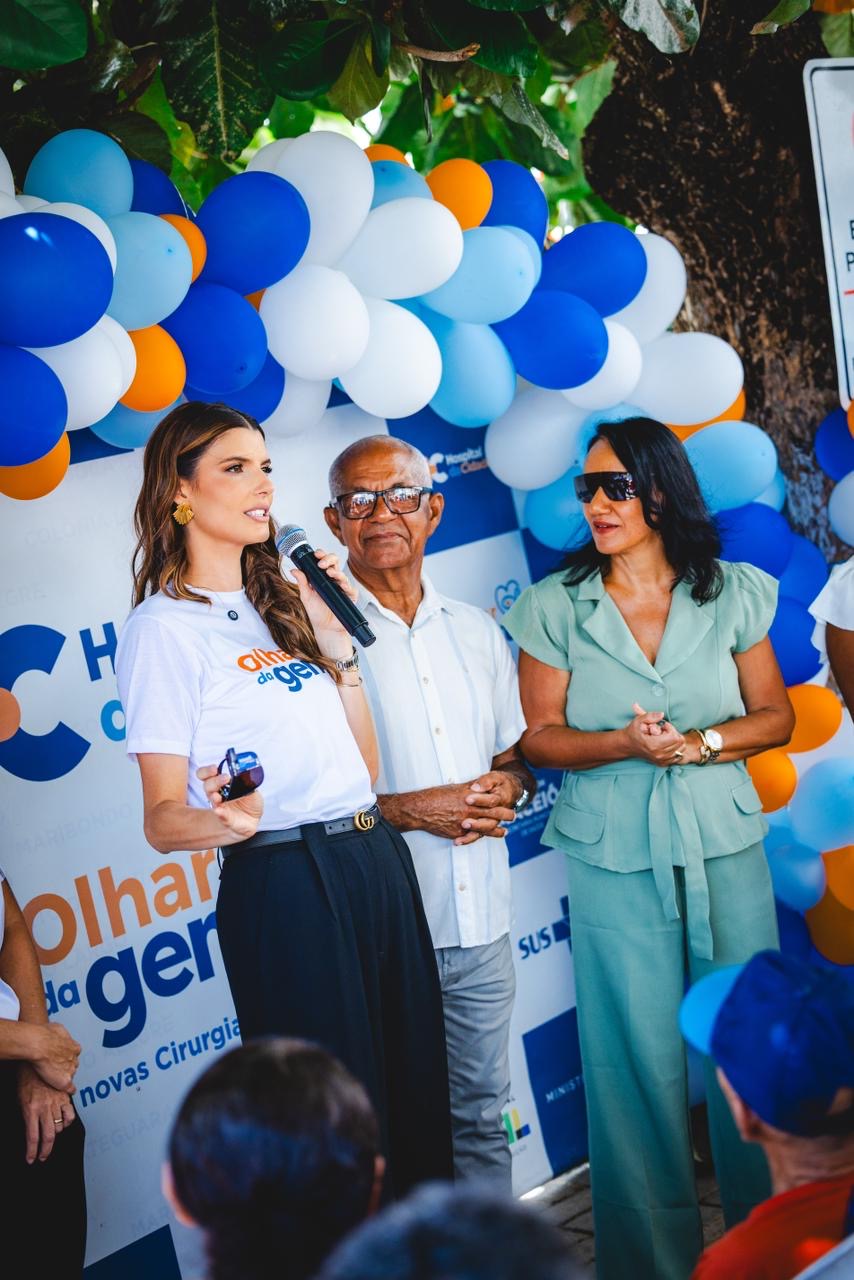 Ao lado do prefeito de Japaratinga, a primeira-dama de Maceió, Marina Candia, anunciou a realização de 200 cirurgias oftalmológicas destinadas aos moradores do município, por meio do Programa Olhar da Gente.