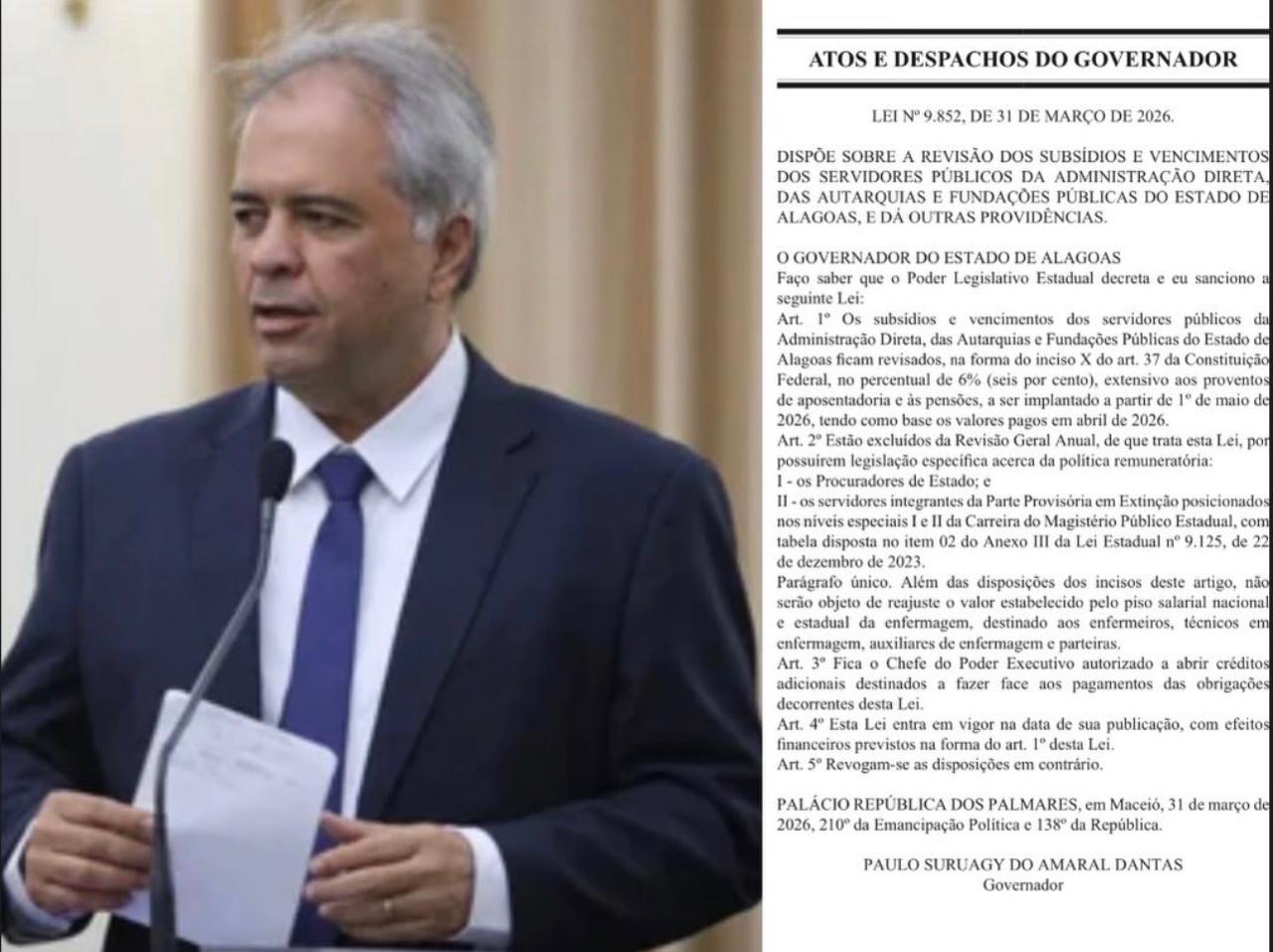 A Assembleia Legislativa de Alagoas aprovou o projeto de lei que garante reajuste salarial para os servidores públicos estaduais. A proposta, de iniciativa do governador Paulo Dantas, já foi sancionada e representa mais um avanço na política de valorização do funcionalismo.