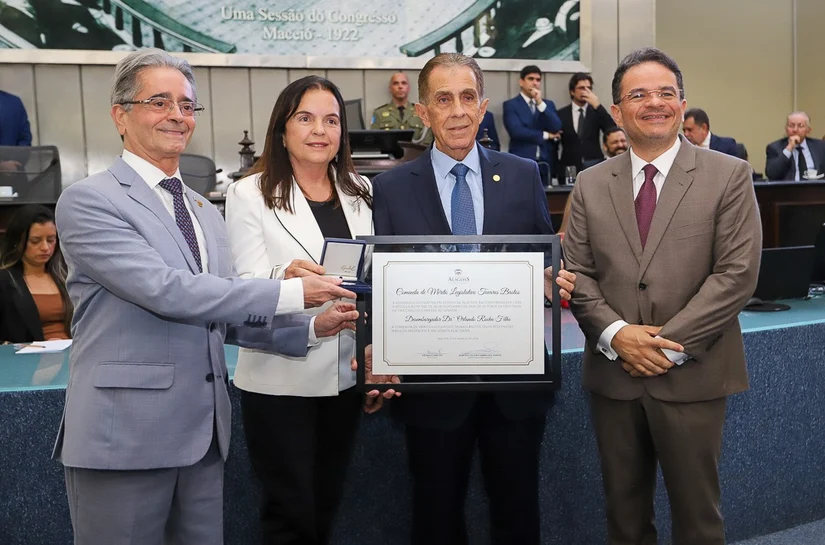Nessa segunda-feira (23), o desembargador Orlando Rocha Filho, do Tribunal de Justiça de Alagoas, foi agraciado com a Comenda Tavares Bastos, a maior honraria concedida pela Assembleia Legislativa de Alagoas. A solenidade ocorreu na sede do parlamento estadual.