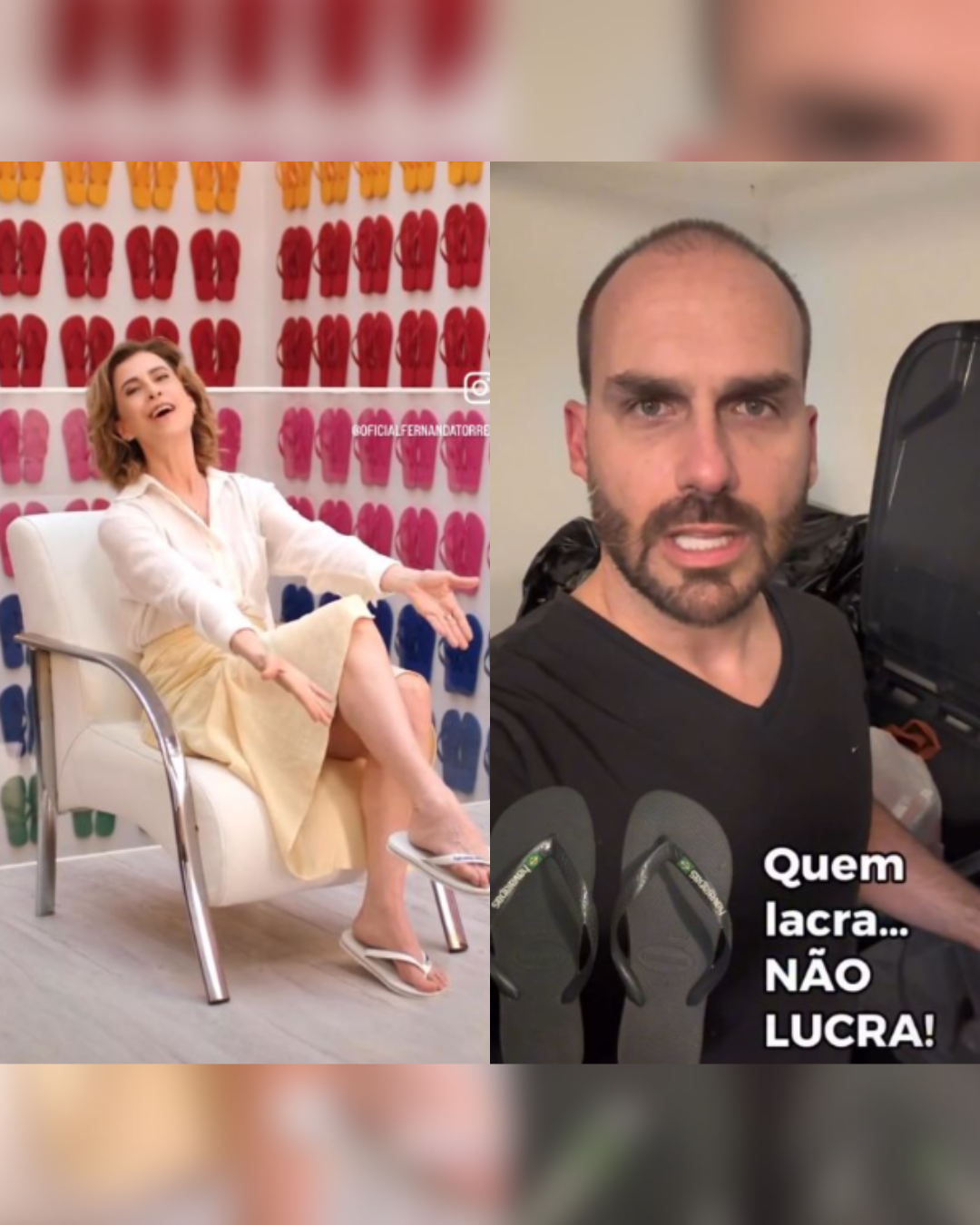 Em resposta, Eduardo Bolsonaro, filho do ex-presidente Jair Bolsonaro, publicou um vídeo jogando um par de Havaianas no lixo. Ele criticou a escolha da atriz como garota-propaganda e acusou a marca de viés político, mencionando nominalmente mulheres condenadas pela invasão à Praça dos Três Poderes em 8 de janeiro de 2023.