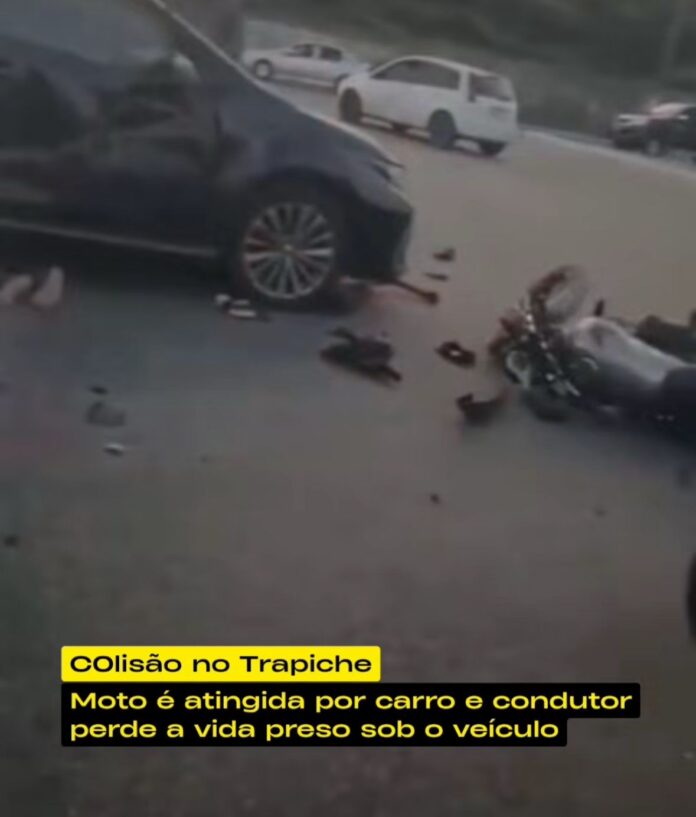 Um grave acidente foi registrado na manhã desta segunda-feira (13) na rotatória do Trapiche, próximo à Braskem, em Maceió. A colisão envolveu um carro e uma motocicleta, resultando na morte do motociclista, que ficou preso sob o veículo após o impacto.