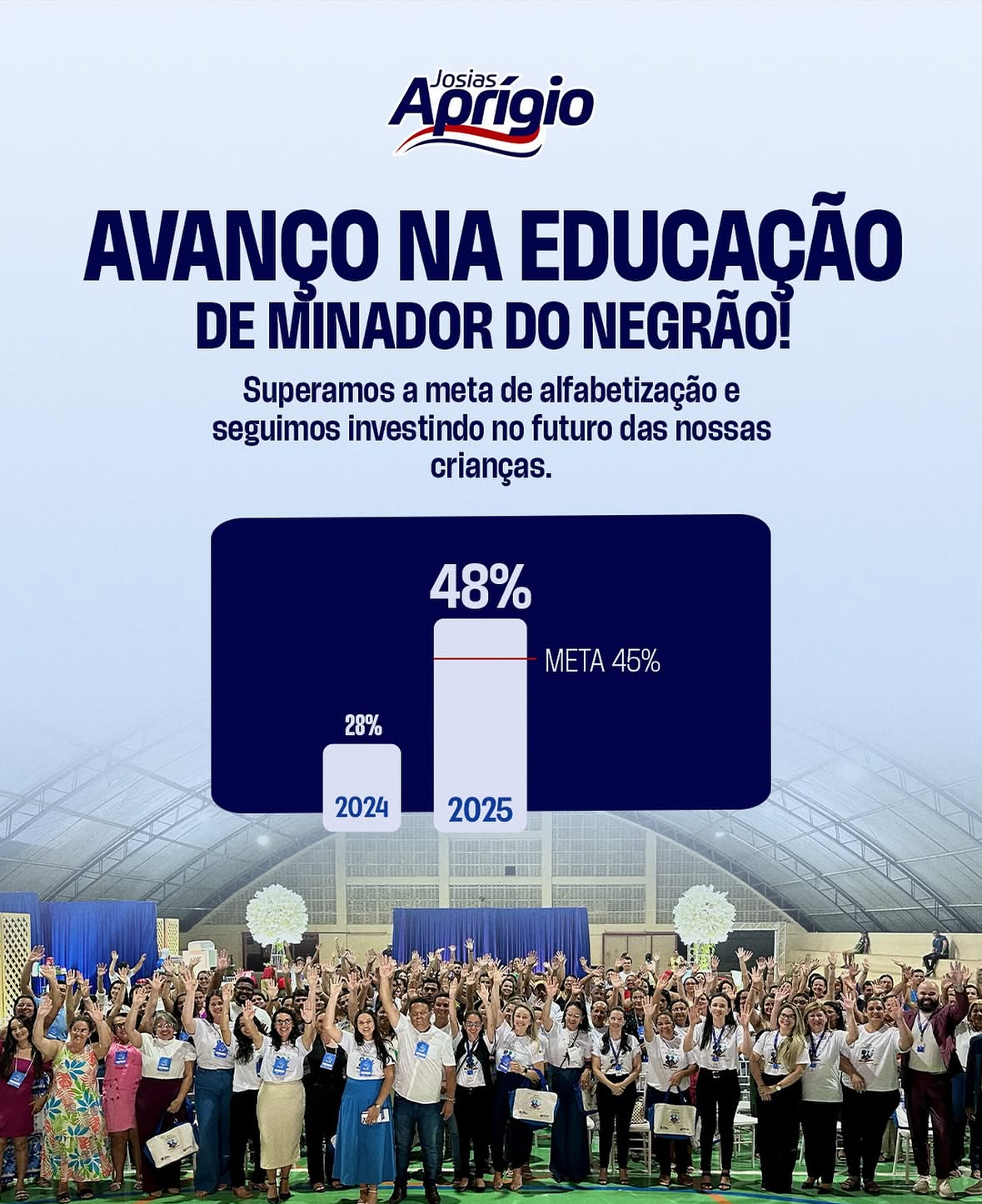 Josias Aprígio destacou que a conquista é fruto de planejamento, dedicação das equipes e compromisso com o futuro das crianças. “Seguimos trabalhando com responsabilidade para garantir uma educação de qualidade e mais oportunidades para nossos alunos”, afirmou.