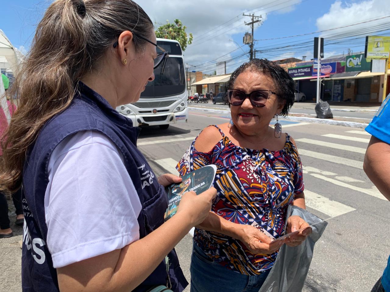 Na ocasião, foram realizadas intervenções com a entrega de panfletos, cartilhas sobre a temática e conversas sobre a importância de prevenir a prática. A coordenadora do AEPETI, Joelma Prescilliano, falou sobre a importância da iniciativa.